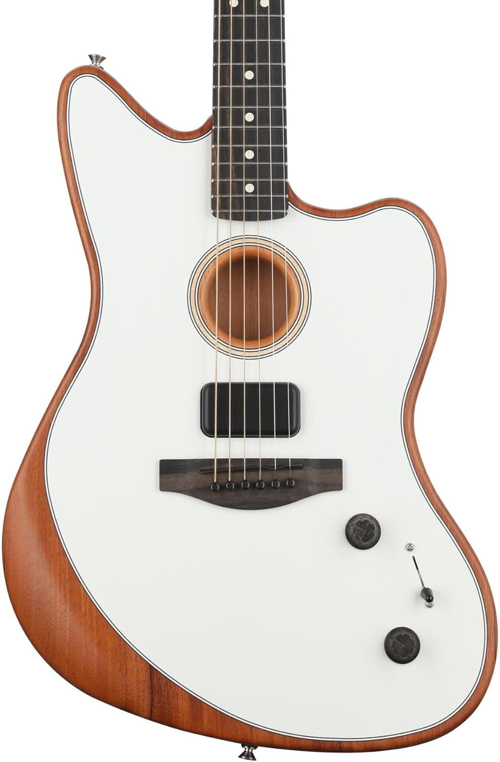 Fender American Acoustasonic Jazzmaster Acoustic Electric Guitar, Arctic White, Ebony Fingerboard, with Gig Bag