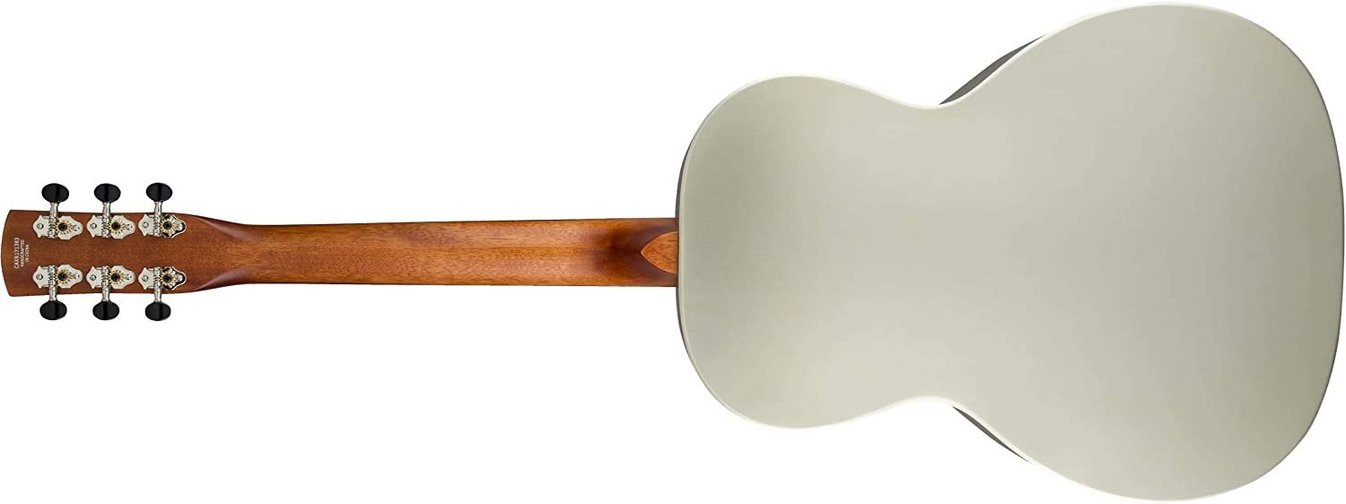 One strum of the Honey Dipper Round-Neck Resonator Guitar transports you back 80 years to a hobo jungle just off the tracks, where wandering workers congregate in camaraderie and the comforting and captivating strains of a real all-metal resonator guitar waft through the smoke of oil-drum fires and enchant the ears with a sound like raindrops beating on a rusty pump house roof. The very sound and look of this fine Gretsch creation will make you want to free yourself from the damning confines of your office, your cubicle or whatever it is that enslaves you and hop the next train to anywhere with a smile on your face as big as the sky and a song in your heart.Get your Gretsch G9201 Honey Dipper Acoustic Guitar today at the guaranteed lowest price from Sam Ash with our 45-day return and 60-day price protection policy.