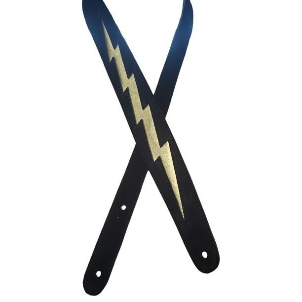 Henry Heller 2" Wide Garment Leather Guitar Strap, Black with Gold Lighting Bolt