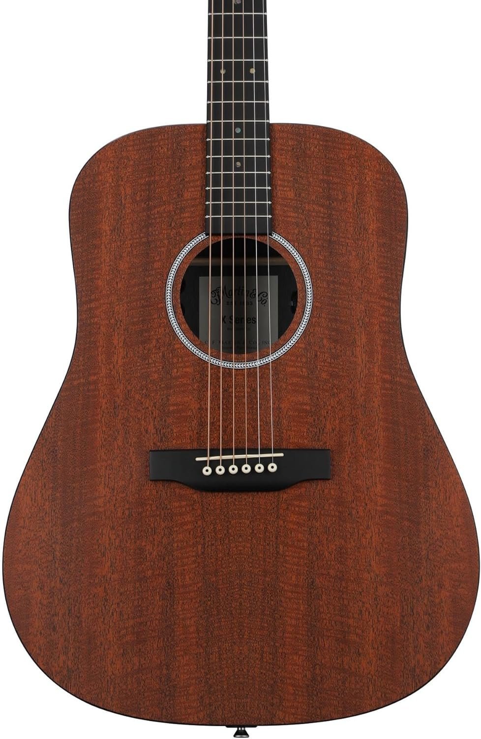 Cutting-edge Performance and Classic Mahogany Looks Martin's X Series of acoustic-electric guitars has long served as a 6-string staple for touring musicians for two reasons: their decidedly modern Martin formula and their superb durability. And while the D-X1E Mahogany exemplifies both those lofty qualities, it introduces a bold new feature into the X Series mix — beautiful printed figured mahogany patterns on the HPL top, back, and sides that mirror the rustic grain lines of top-tier mahogany. Combined with classic Martin X-bracing, a big-bodied dreadnought construction, and stage-ready Martin E-1 electronics, the D-X1E Mahogany supplies full-range Martin unplugged warmth in the studio and feedback-resistant acoustic-electric flexibility onstage. You also get an ultra-sturdy birch laminate neck, a composite richlite fingerboard, and rock-solid closed-gear tuners. Boasting classic mahogany looks and cutting-edge acoustic-electric performance, the Martin D-X1E Mahogany acoustic-electric is a show stopper of a 6-string with road-ready durability to ensure the show