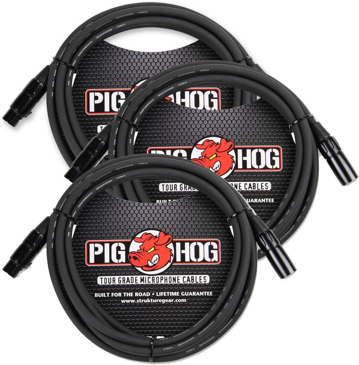 Pig Hog PHM10 8mm Tour Grade Mic Cable, XLR 10ft - 3-packPig Hog cables are precisely overbuilt to stand up to the most grueling tour conditions imaginable, and are designed to provide the highest quality performance with outstanding value. We understand your cables need to sound great and perform reliably, night after night, without costing you an arm or a leg! That’s why we use an extra-thick, yet supple 8mm jacket that resists kinking or tangling. Our proprietary conductor technology and robust shielding is designed to ensure your sound is crystal clear, without noise or interference, every time. Each cable is hand tested before shipment, and we back up our quality with a lifetime warranty so you can be sure your Pig Hog Cables will be an integral part of your rig for years to come.About this item* High Performance Tour Grade Microphone Cable* 8mm high quality rubber outer covering* Heat shrink protected connectors* Lifetime Guarantee* Length: 10 ft
