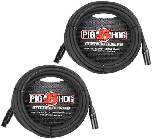 XLR Male to Female 25 Foot Tour Grade Microphone Cables, (2 Pack)Pig Hog cables are precisely overbuilt to stand up to the most grueling tour conditions imaginable, and are designed to provide the highest quality performance with outstanding value. We understand your cables need to sound great and perform reliably, night after night, without costing you an arm or a leg! That’s why we use an extra-thick, yet supple 8mm jacket that resists kinking or tangling. Our proprietary conductor technology and robust shielding is designed to ensure your sound is crystal clear, without noise or interference, every time. Each cable is hand tested before shipment, and we back up our quality with a lifetime warranty so you can be sure your Pig Hog Cables will be an integral part of your rig for years to come.* High performance microphone cable* 8mm high quality PVC outer covering* Heat shrink protected XLR connectors* Lifetime guarantee