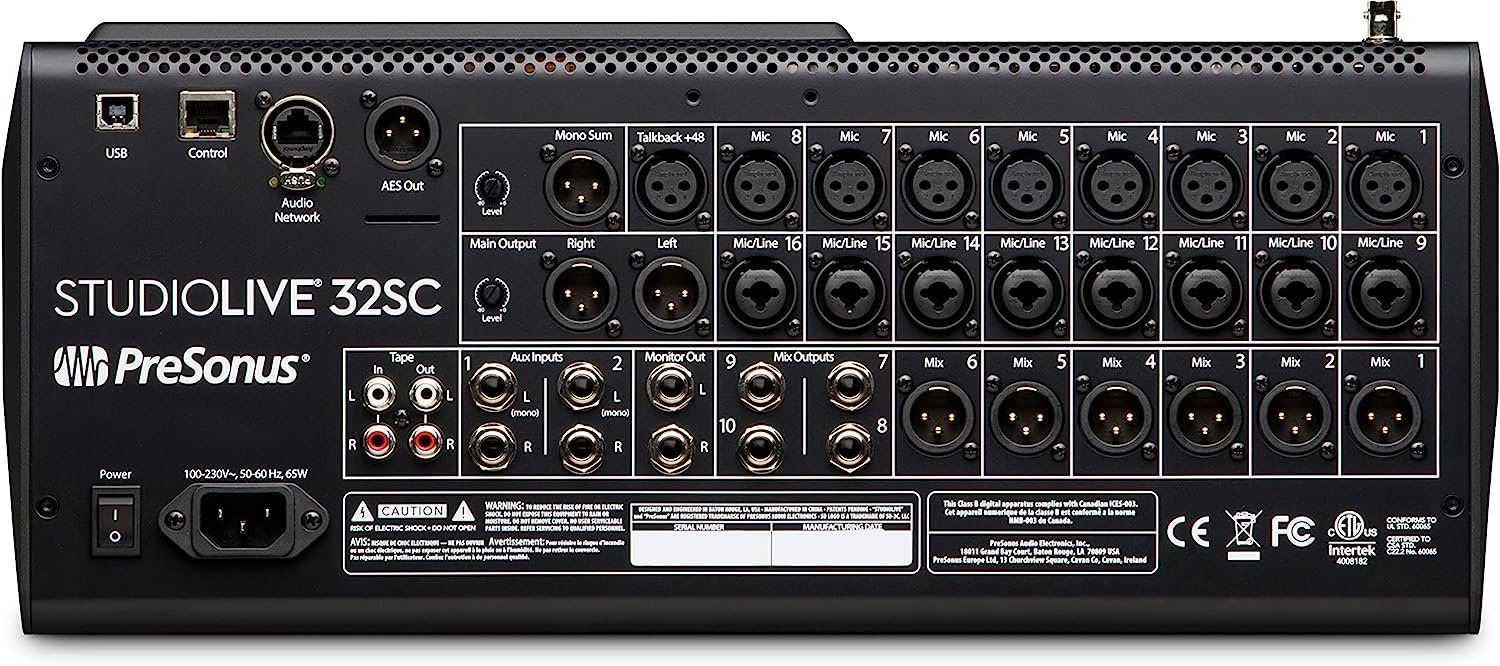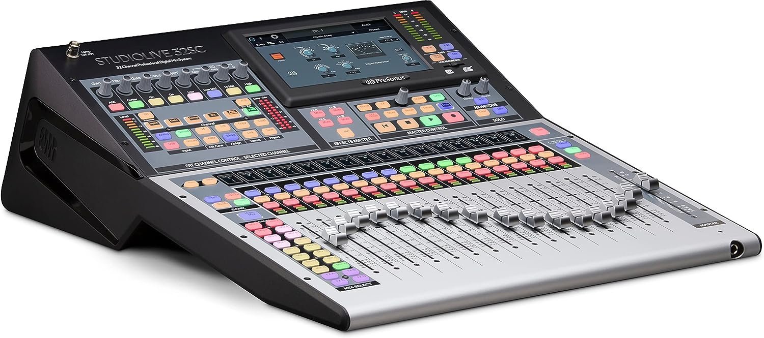 PreSonus StudioLive 32SC Compact 32-channel/26-bus digital mixer with AVB networking and dual-core FLEX DSP EngineA 32-channel powerhouse packed inside a portable, rack-mountable frame, the StudioLive 32SC is a compact digital mixer that can compete with its bigger brothers, particularly when you consider its price. Thanks to AVB, it’s easily expandable—readily networking with EarMix 16M personal monitor mixers for customized onstage mixes and PreSonus NSB-series stage boxes for additional inputs. The 32SC’s 16 FlexMixes can be individually configured to function as aux buses, subgroups, or matrix mixes—your routing options will border on limitless. The Fat Channel processing section employs expandable, plug-in options with vintage-style EQ and classic compression options on every input channel and output bus. The 32SC also ships with PreSonus Capture recording software, which can be run directly on your mixer or Windows or Mac computer. Record all 32 channels plus a stereo mix of your choosing via USB, to an SD Card, or both for the ultimate redundant live recording rig.The 32-channel StudioLive 32SC packs large-format digital mixer power into the smallest compact chassis possible. Pound for pound, it’s the best digital mixer available for building your dream studio or putting together a pro touring rig for your band. Powered by the dual-core PreSonus FLEX DSP Engine, The StudioLive 32SC is loaded with 40 mixing channels, 26 buses, and 286 individual processors. Unique features include: unmatched 128-channel (64x64) USB recording; onboard multitrack SD Card recording with true virtual soundcheck; expandable, Fat Channel plug-ins with studio-quality, vintage EQ and classic compression options on every channel and mix; 16 FlexMixes individually configurable as Aux, Subgroup, or Matrix mixes; 17 touch-sensitive, motorized faders; and a comprehensive software package, including PreSonus’ Studio One Artist DAW and Capture live-recording software.