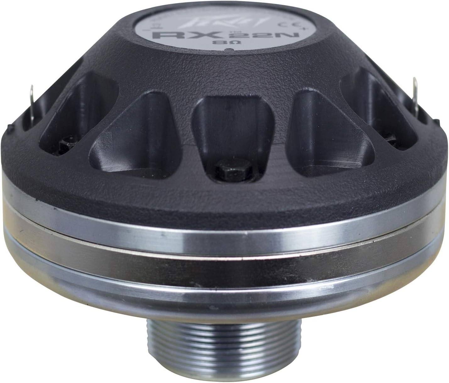 RX™ 22N Neo HF DriverRX™ 22N Neo HF Driver2"Throat Parameter: 0.875" / 22 mmNominal Impedance: 8 OhmsMinimum Impedance: 5.2 OhmsDC Resistance: 5.1 OhmsPower Capacity 1000 Hz to 20,000 Hz: 280 W peak, 140 W program, 70 W continuous, using pink noise band limited from 1000 Hz to 20 kHz (AES 2-1984)Sensitivity: 111 dB / 1W 1m On-axis on 90º H x 45º V hornNominal Efficiency: 30%Frequency Response: 500 Hz to 20,000 HzRecommended Crossover: 1,200 Hz at 12 dB / OctaveLowest Recommended Crossover: 500 Hz at 12 dB / OctaveDiaphragm: Commercially pure titaniumVoice Coil Diameter: 2.0" / 50.8 mmVoice Coil Material: Edge-wound copper-clad aluminum ribbon with a high temp composite bobbinVoice Coil Cooling: FerrofluidFlux Density: 20,500 gauss (2T)Dimensions: 3.858" (98 mm) diameter x 3.01" (76.4 mm) depthHorn Coupling Diameter: 7/8" (22.2 mm)Horn Coupling Threads: Standard 1 3/8" - 18"Net Weight: 2 lbs. 12 oz.Shipping Weight: 3 lbs. 11.5 oz.Diaphragm Kit: 03617300Weight Packed: 2.98 lb(1.35 kg)Width Packed: 4.5"(11.43 cm)Height Packed: 4.725"(12.0015 cm)Depth Packed: 3.55"(9.017 cm)