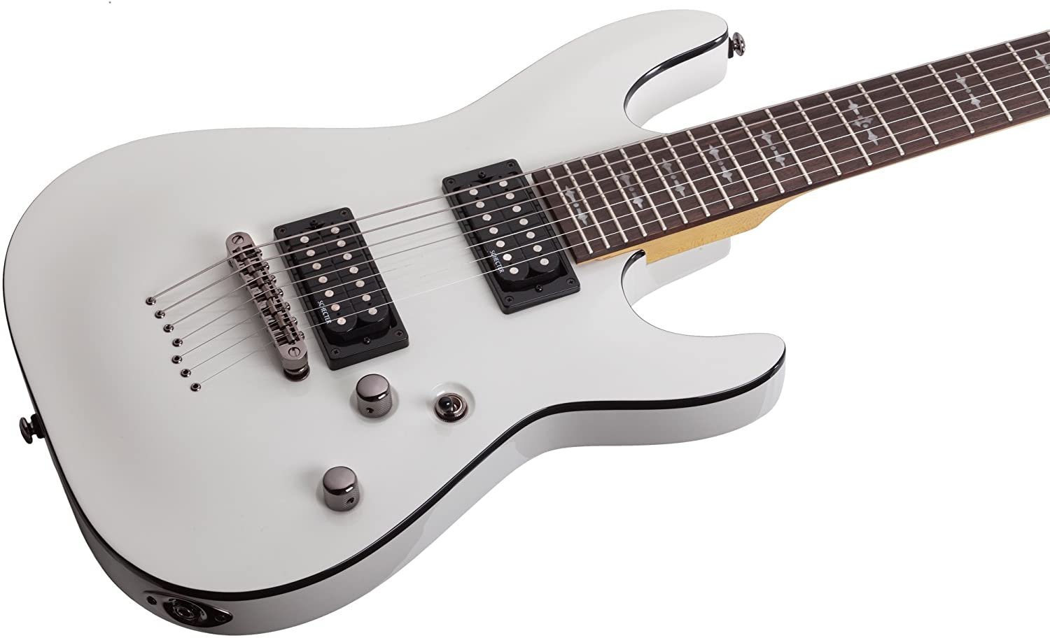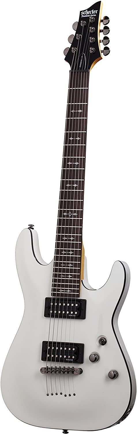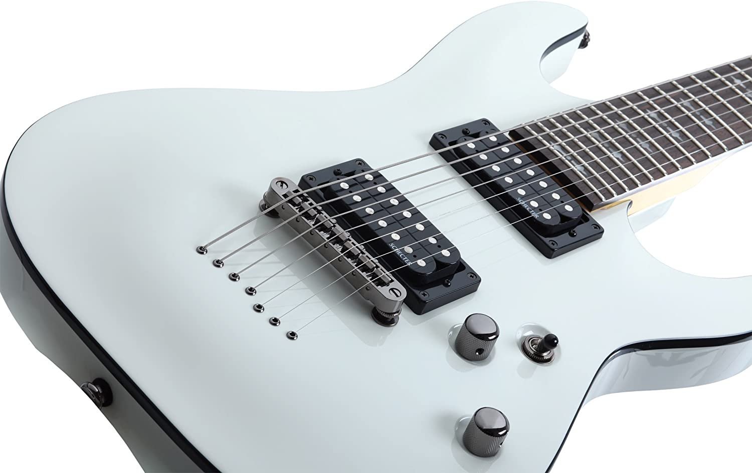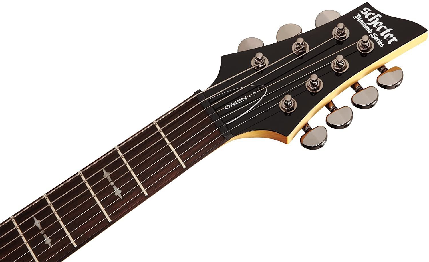 The Schecter Omen 7 7-String Electric Guitar is loaded with quality features, starting with classic design tuners in a lubricated and sealed housing to protect gears for a lifetime of maintenance free playability. Details include a 15:1 gear ratio for smooth and precise tuning, removable knobs, threaded hex peghead bushing, and a 10 millimeter diameter peg hole. Another popular design feature is the Omen 7 Rosewood fingerboard. Naturally oily, the rosewood works well for any surface that sees frequent human contact.