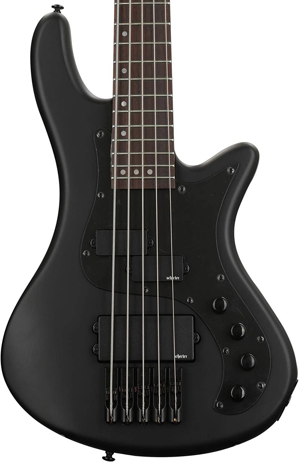 The Stiletto Stealth features: a Basswood body, Maple neck, Rosewood fingerboard, 24 X-Jumbo frets, and 2-Band Active EQ. Offered in both 4 and 5 string options, the Stiletto Stealth comes loaded with Schecter Diamond SuperRock MM/Schecter Diamond P pick-ups. The Stiletto Stealth delivers a bombardment of building-shaking tones capable of filling any mix.