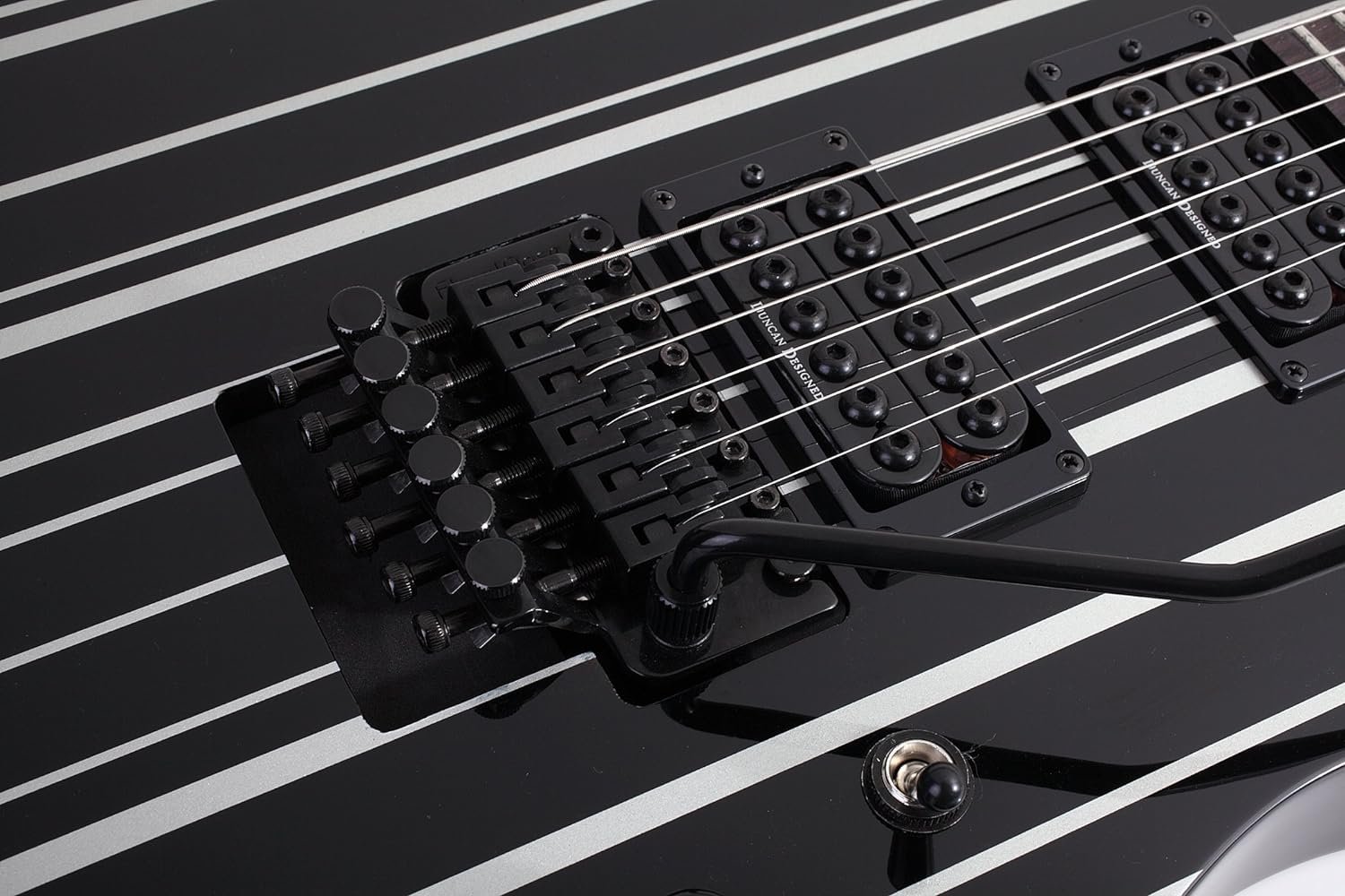 The new Synyster Standard is now equipped with Schecter Diamond Synyster Gates Humbuckers. The 24 X-Jumbo fret, 25.5” scale, 16” radius ebony fretboard is set with SYN and Deathbat inlays accompanied by gothic cross inlays. The Schecter exclusive Floyd Rose Special “Hot Rod” tremolo & locking nut are set into a mahogany body and 3-pc mahogany neck with carbon fiber reinforcement rods.