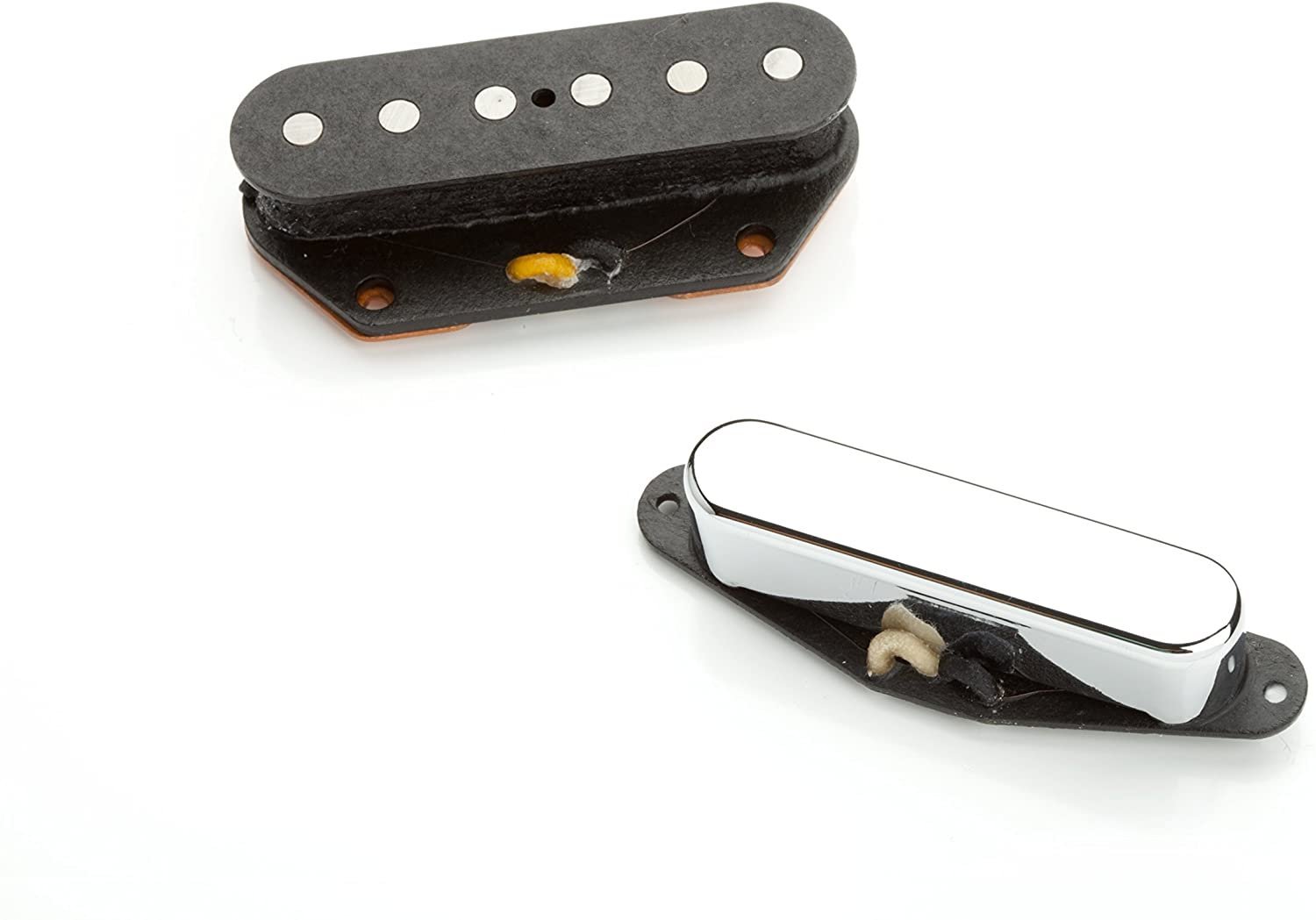 A faithful tribute to the originals, our Vintage Broadcaster set is the perfect choice for discerning players who demand something more from their Tele pickups. The lead pickups larger diameter magnets and higher output coax biting treble and snarly midst for raucous riffs and stinging lead runs from any Telecaster. The rhythm pickup is designed for a smooth, open tone with warm lower midst and airy highs. With its hand ground alnico 5 rod magnets, this neck pickup will deliver big full sounding chords. Warm enough for most types of rhythm playing, but percussive enough for chicken picking as well. Since 1978, wave been building all of our vintage Fender style single coil pickups with the right color and thickness of Forbon flatwork, along with the period correct magnet stagger. Each pickup comes complete with waxed and tinned cloth pushback hook-up wires and traditional keyed bottom plate. We hand file the flatwork, assemble, and lacquer the bobbin just as it was done during Fenders Golden Age. Each pickup is potted in our wax formulation for squeal free performance.