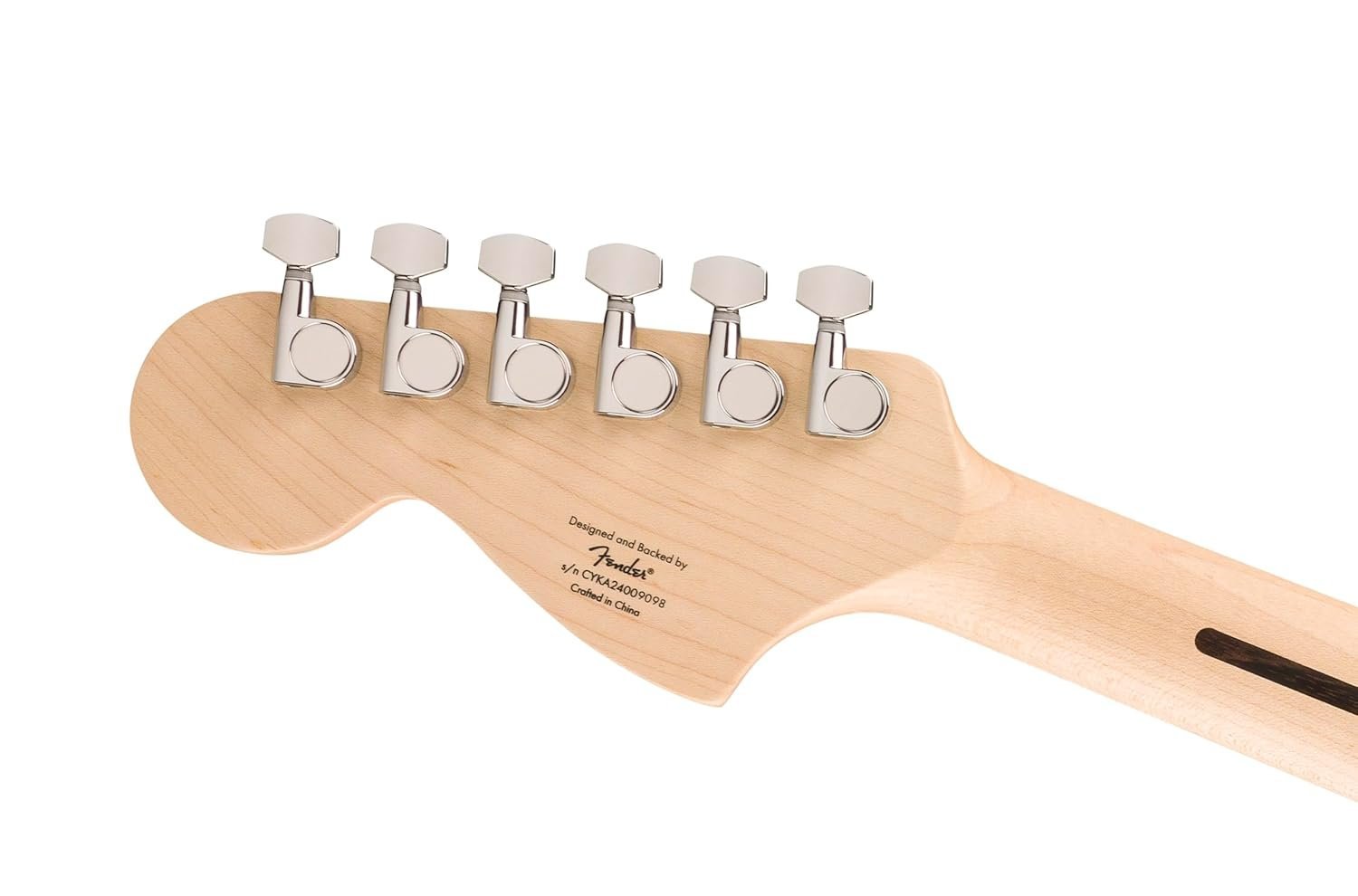 About this itemThin and lightweight bodyFloating bridge and vintage-style tremoloSlim and comfortable “C”-shaped neck profileTwo Squier single-coil pickupsSealed die-cast tuning machines with split shafts