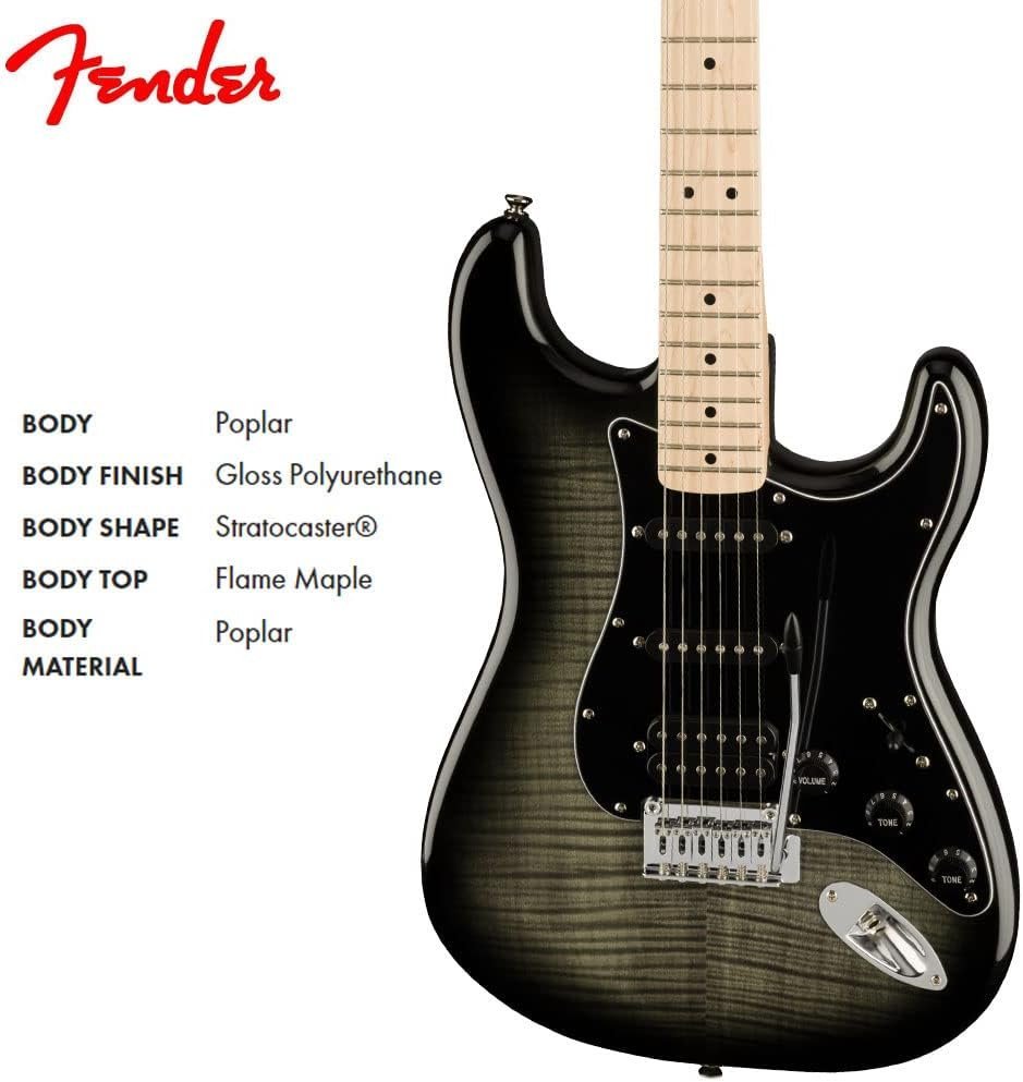 Squier Affinity Series Stratocaster FMT Electric Guitar, Black Burst, Maple Fingerboard
