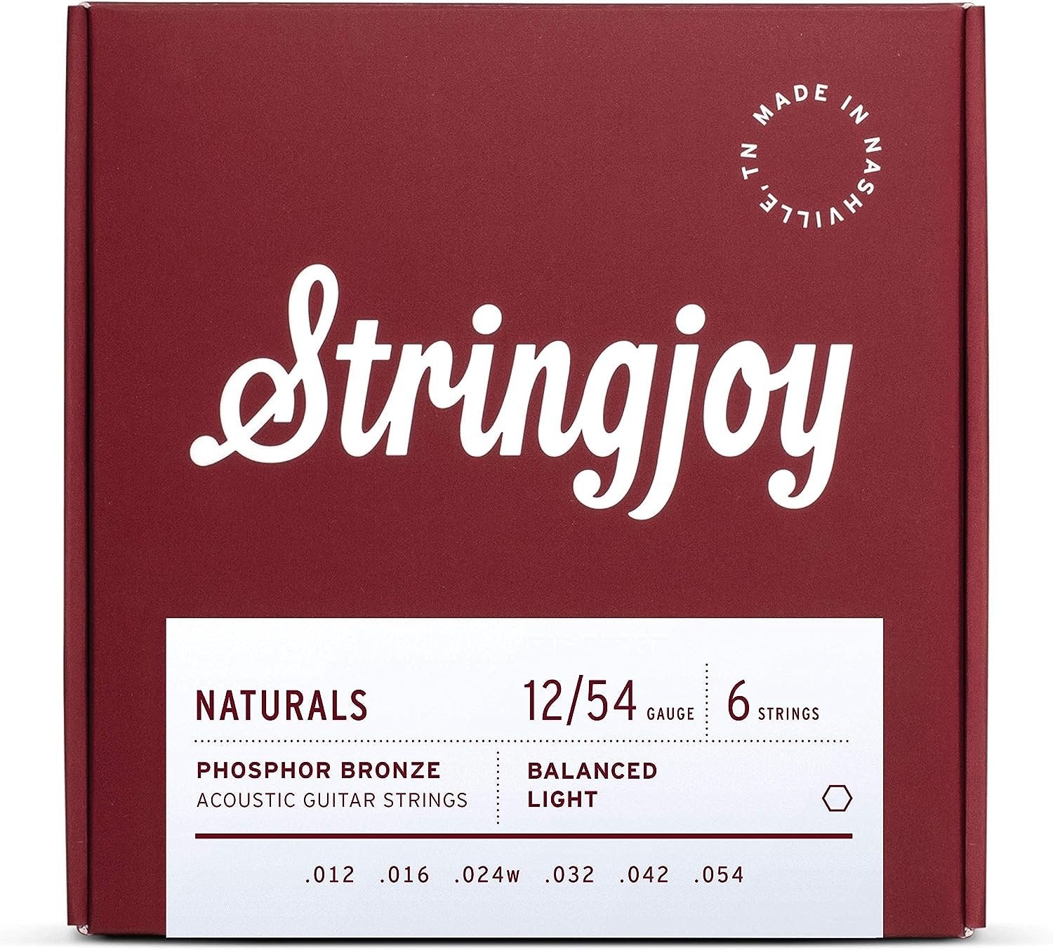 Stringjoy NB1254 Naturals Phosphor Bronze Acoustic Guitar Strings, (Light Gauge - 12-54)