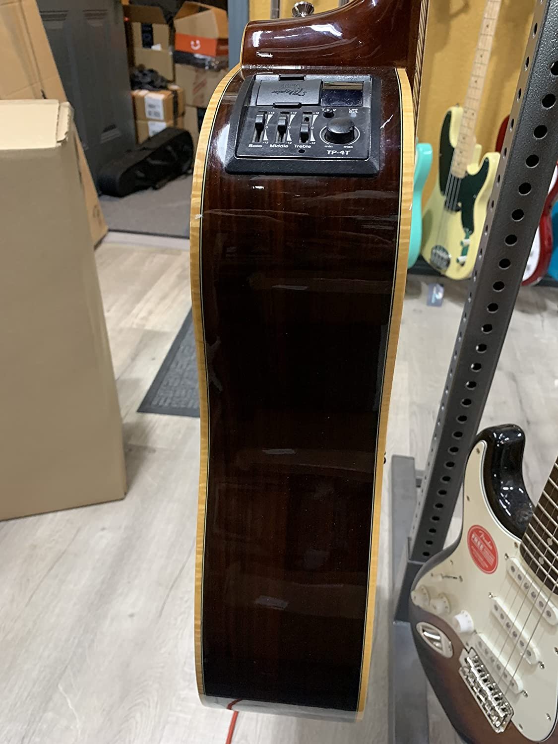 The EF341SC dreadnought is handcrafted in our pro series facility that has been building precision quality instruments over five decades. This guitar has been the choice of pro musicians of all genres. The versatility of this guitar begins with its solid cedar top that can play sweet mellow passages or power chords with equal ability. The maple back and sides are a perfect reflector for the tone generated by the soundboard and the gloss black finish looks great under the stage lights. The mahogany neck is joined to the body with a traditional, ultra strong dovetail joint. Includes Takamine’s CT4B II preamp system paired with the unique Palathetic under-saddle pickup for peerless amplified response. The highly acclaimed CT4B II preamp system with three-band EQ, volume control and built-in tuner.
