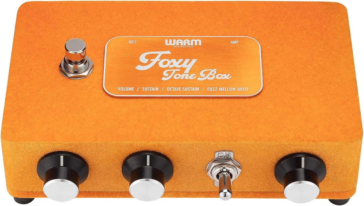 The new Foxy Tone Box from Warm Audio is a hyper-accurate recreation of one of the most sought-after and beloved fuzz pedals of all time - used in the early seventies by legendary tone masters Billy Gibbons and Peter Frampton, and in the present day by folks like Adrian Belew, Nine Inch Nails and Beck. Covered in thick velvet just like the vintage pedal, the Warm Audio Foxy Tone Box faithfully recreates the vintage circuit and brings you the huge tone, octave-up sounds and look of the originalwithout having to pay crazy vintage prices! The specific components used in a pedal circuit are critical to the way that it sounds and reacts to your playing, so each Foxy Tone Box is assembled by hand using premium parts. We searched far and wide for a stash of the correct NOS (“New Old Stock”) Fairchild transistors used in the original—and then paired them with germanium diodes, high-watt carbon resistors, and film capacitors to bring the fury of the vintage pedal to the present day. It’s true bypass, and it sounds like nothing else on earth! Just like the original, the Foxy Tone Box features controls for Volume, Sustain, and Fuzz (from “Mellow” to “Brite”), along with a switch to engage the pronounced octave effect. From mellow and subdued crunch to all-out searing fuzz and everything in between, this pedal is a virtual library of dirt encased in orange velvet! To get started, keep the Octave switch off and roll the Fuzz to the “Mellow” side for warm, square-wave distortion. Then engage the Octave effect, crank the Fuzz to “Brite", and increase the Sustain for maxed-out, hyper-compressed tones that are barely hanging on for dear life! Electric guitar is the obvious application, but try it on synthesizers, drum machines, bass, acoustic/electric, and more. If you can plug a cable into it, the Foxy Tone Box can add character you just can’t get anywhere else.