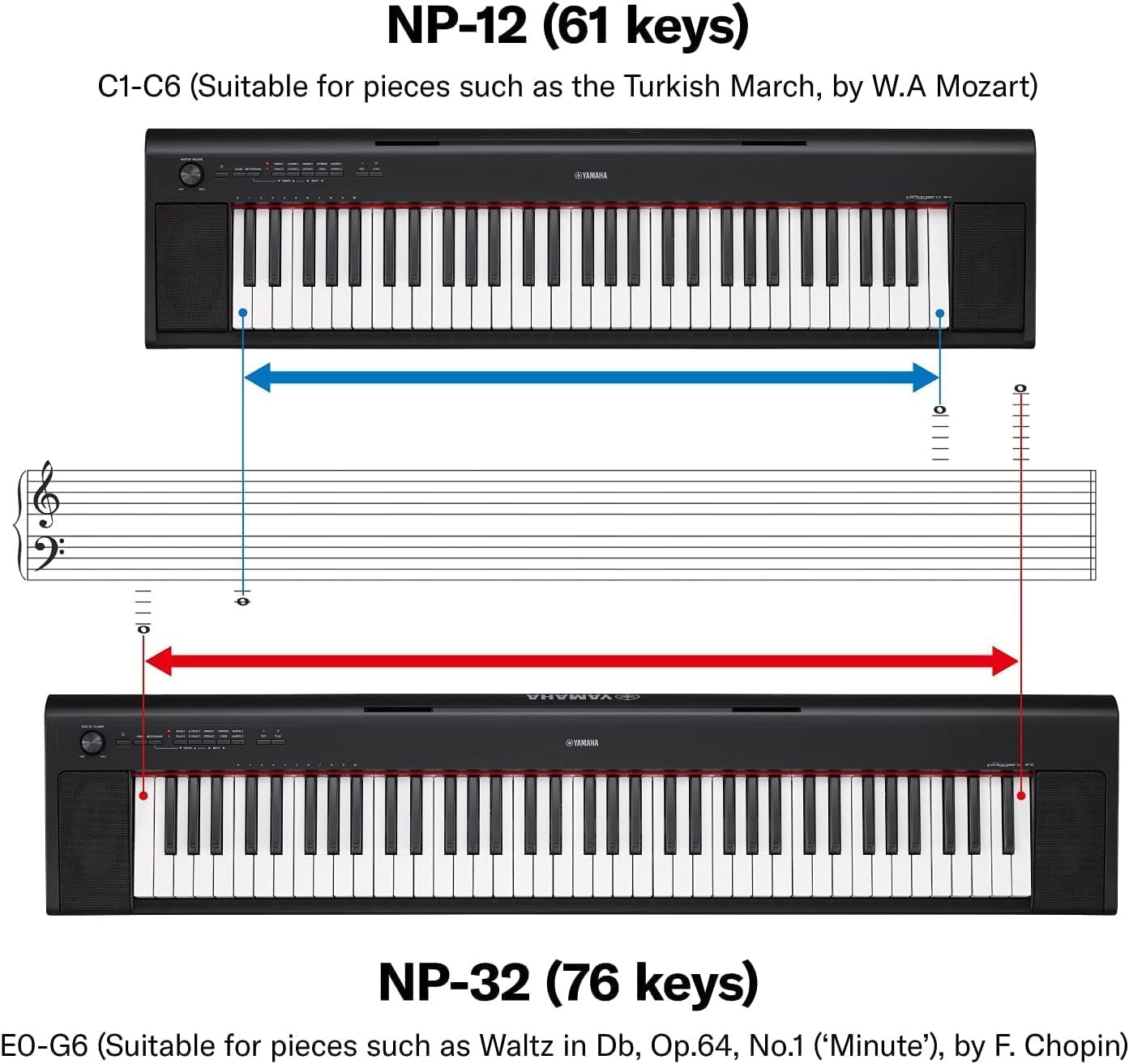 Yamaha NP32 76-Key Lightweight Portable Keyboard with PA130 Power Adapter, Black